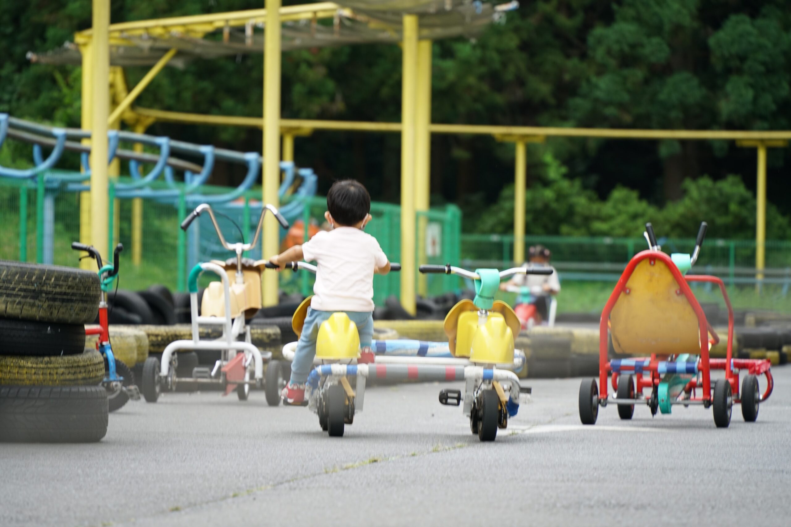 息子は乗り物コーナーがお気に入りで、ここのキッズコースターで初挑戦しました。