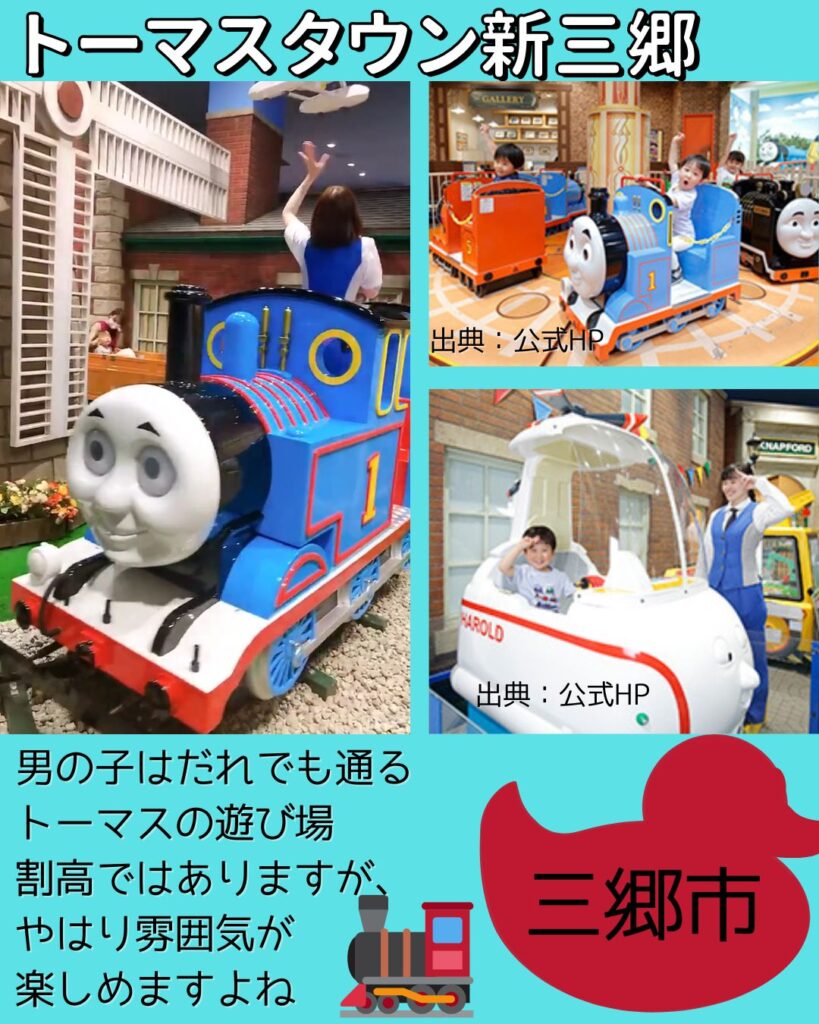 ららぽーと新三郷にある、きかんしゃトーマスのテーマパーク。ここは変わらず不動の人気を誇ります。