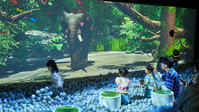 プロジェクションマッピングを使った「泥んこ遊び(汚れない!)」や、映像と連動した「木登り」など、不思議な体験が盛りだくさん。