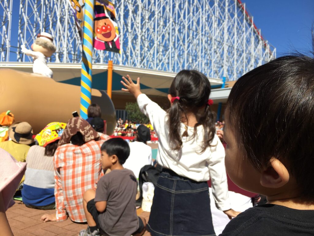 滑り台や顔出しで楽しんでました。ダンスイベントや歌の踊りは人混みが気になってあまり好きではなかったようです。