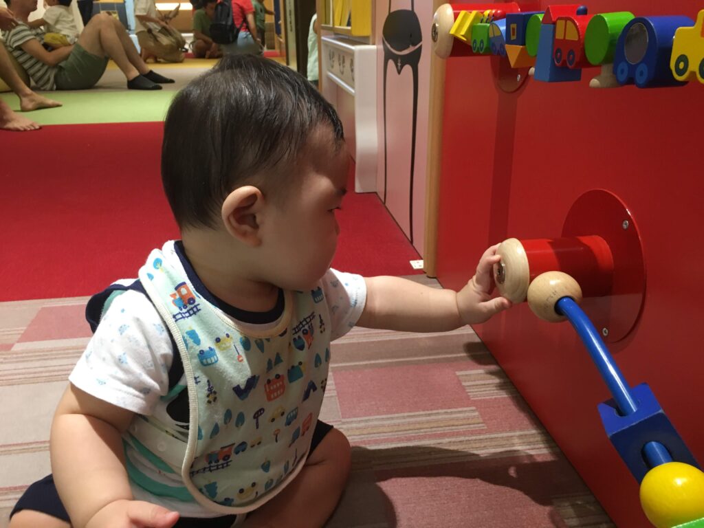 1歳ではベビーガーデンエリアで遊ぶことになりますが、ボールプールやおもちゃを散歩、滑り台などで楽しんでます。