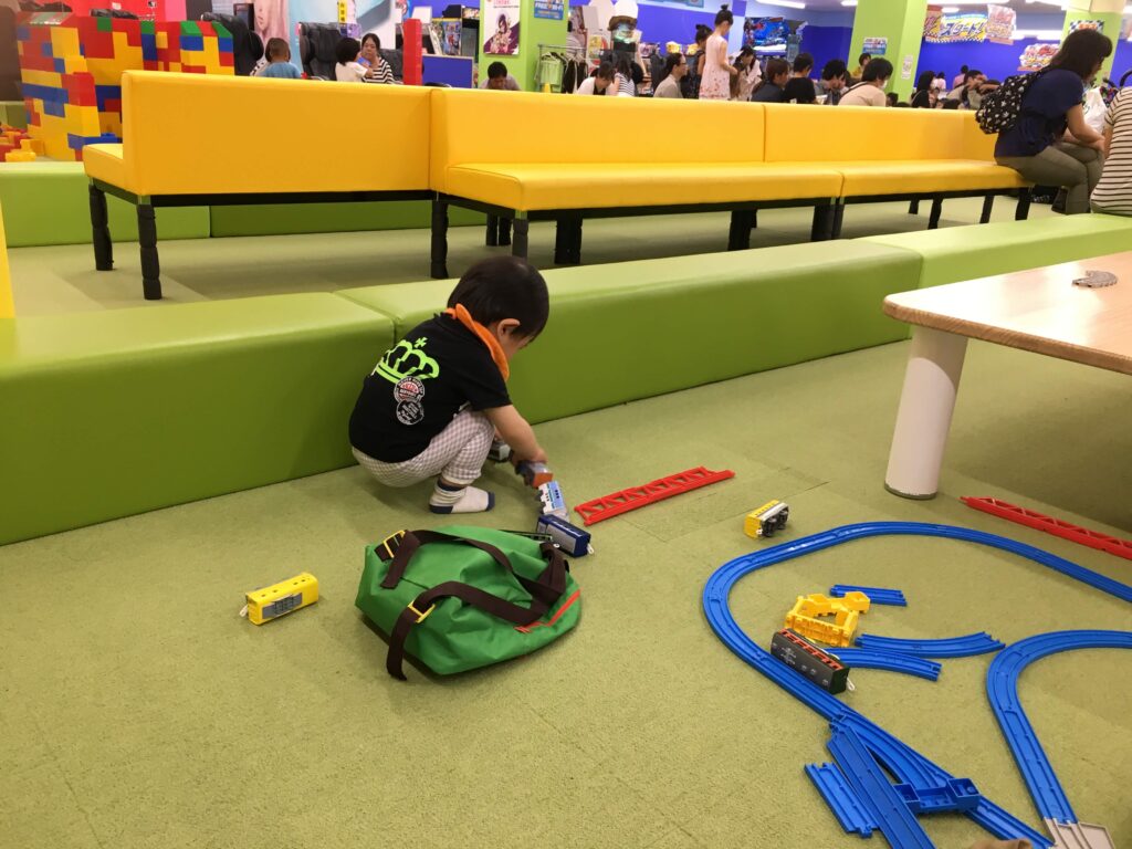 2歳の息子はゲームセンターで、新幹線の乗り物やアンパンのゲームで遊ぶのが大好きです。