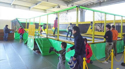 トランポリンやアイススケートと体を動かす遊びがいっぱいあります
