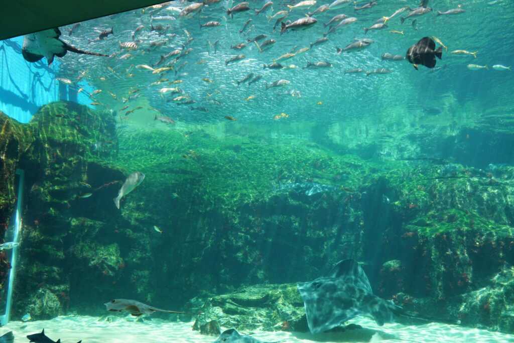海底トンネルでお魚の上空に捉えることができるのですが、自然光で映えたお魚がキレイで人工的でない感じがいいです。