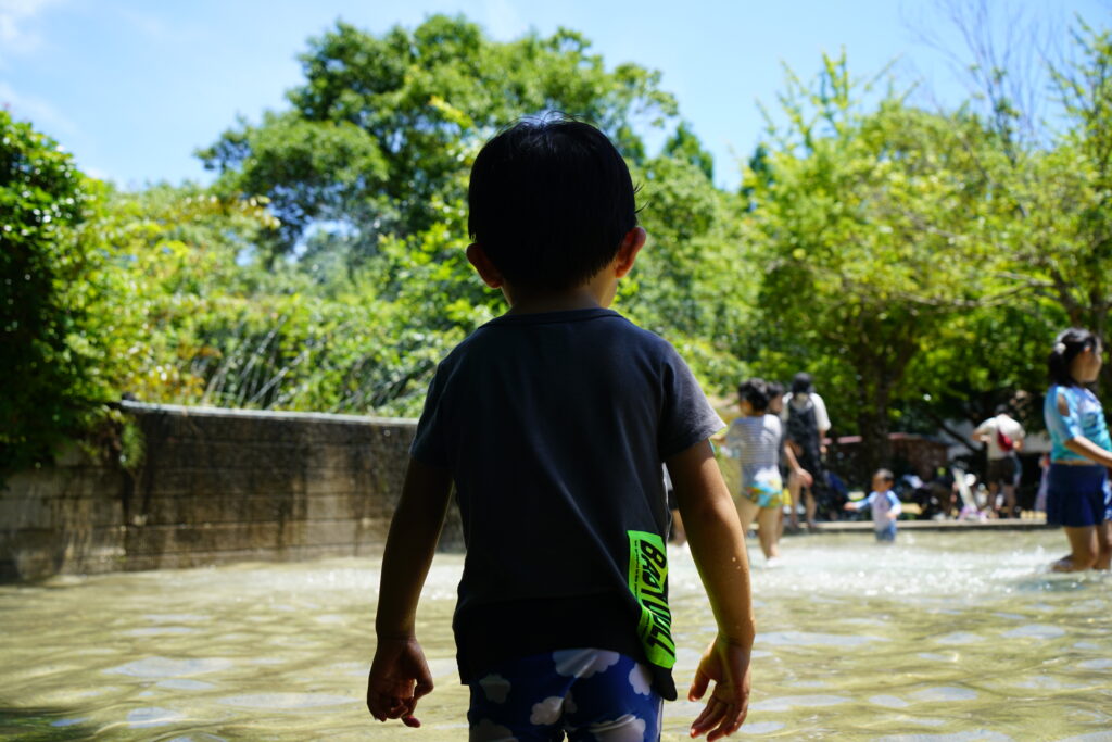 夏季には傾斜を生かした川のじゃぶじゃぶ遊びが無料で楽しめるので、人気ですが、コロナ禍でもけっこう混雑しており、汚れています。
