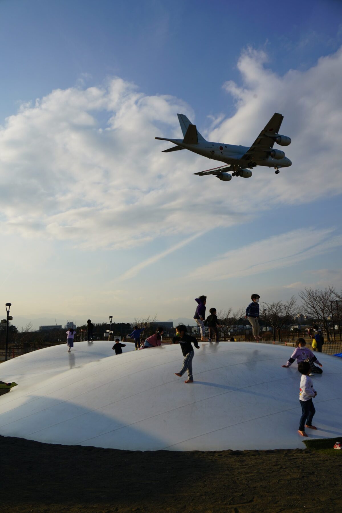 基地の隣にある為、公園で遊ばなくても飛行機を間近で見れるので、それだけでも楽しめます。 羽田や成田空港に近い公園はよくありますが、関東周辺では大型の公園の遊具で遊びながら最も近く見えるスポットではないでしょうか。