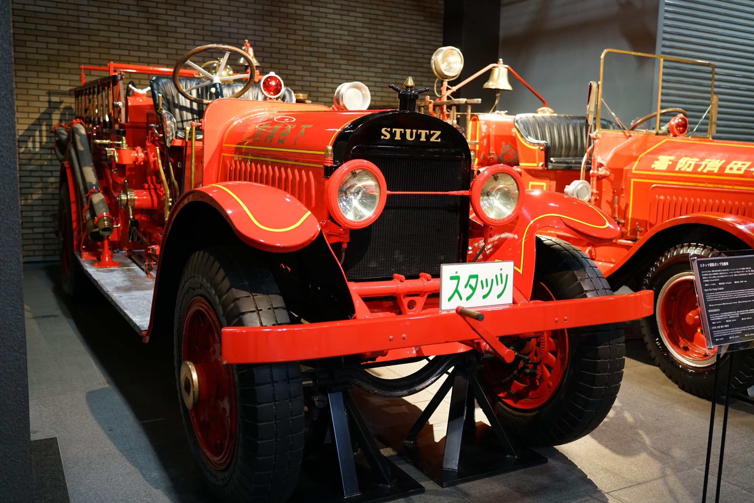 その後消防車の博物館というだけあってみたことないような昔の消防車が並んでいます。