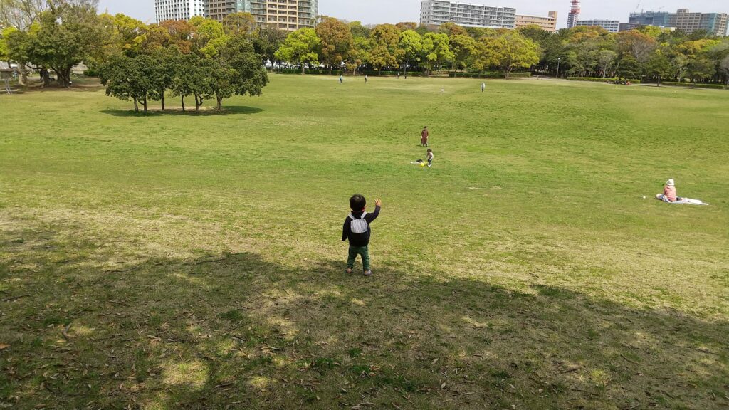 昼間に来ても遊具はありませんが、広い広場なので、ボールあそびや探検したりといった楽しみ方もできるますし、タワー内には子供用のゲームセンターもあるので、夕方からきて夜イルミネーション見てみるのもいいかと思います。