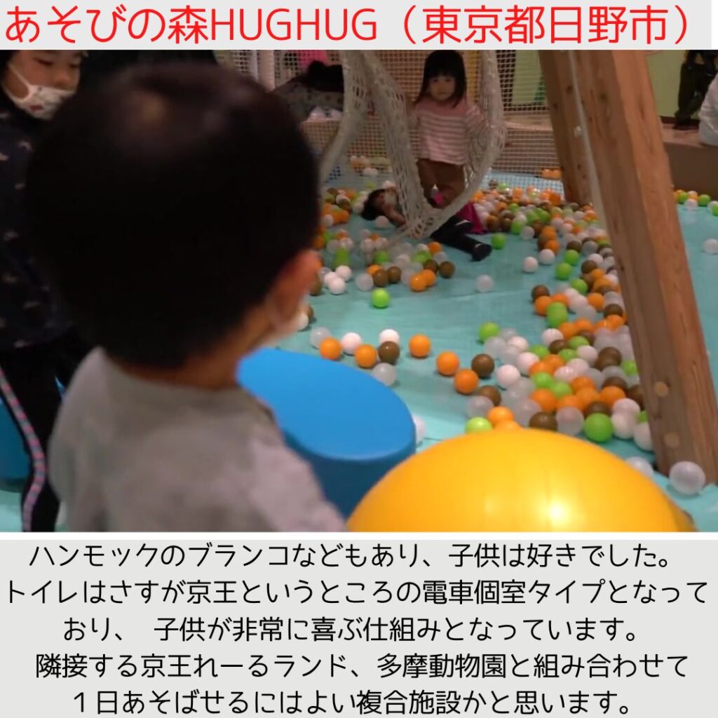 - 雨の日ポイント: 向かいにある室内遊び場「京王あそびの森 HUGHUG(ハグハグ)」とセットで行けば、最強の室内コースになります。