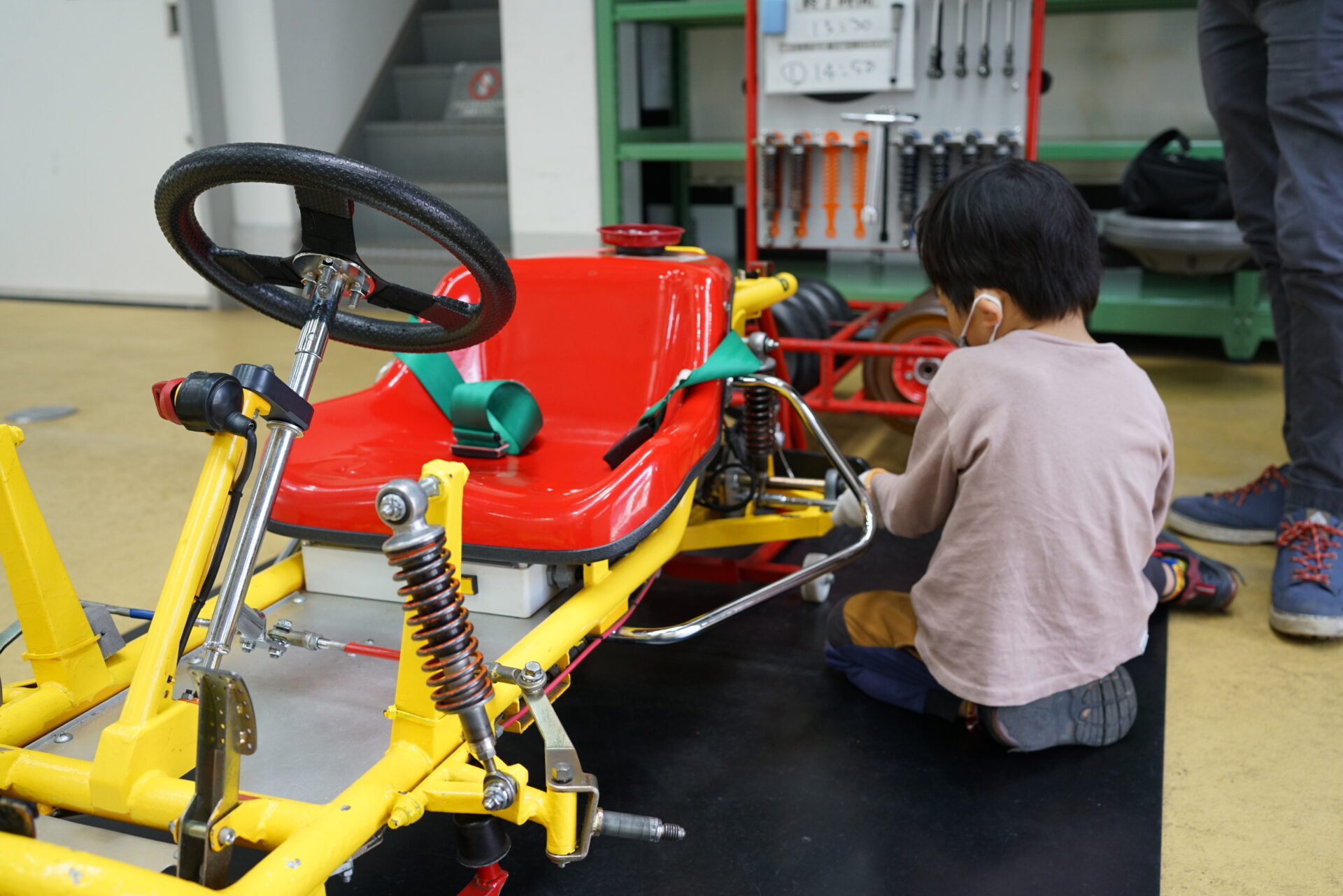 バイク型の乗り物です。最初は「怖い」と言っていましたが、スタッフの方の丁寧な指導で最後は一人でゴール。達成感で顔つきがキリッと変わる瞬間が見られました。